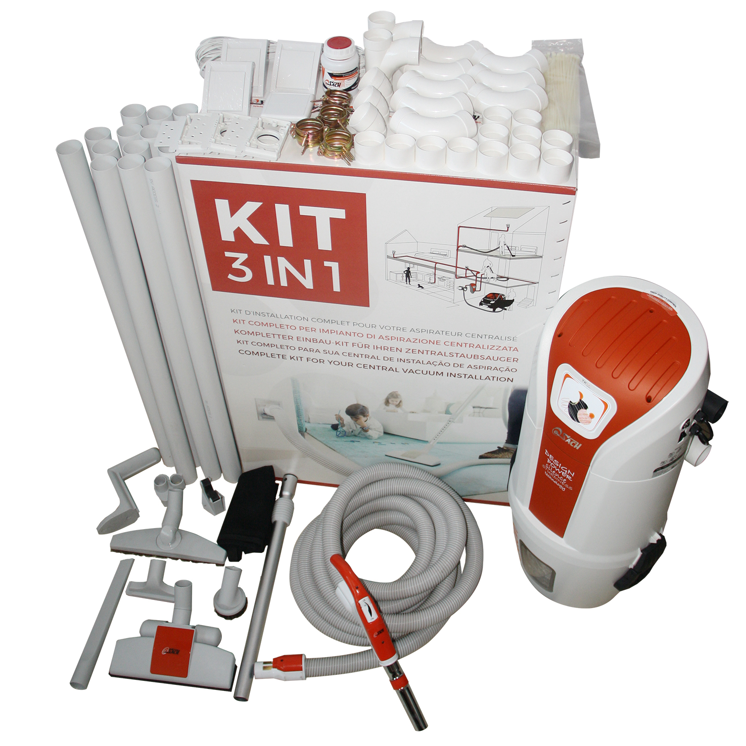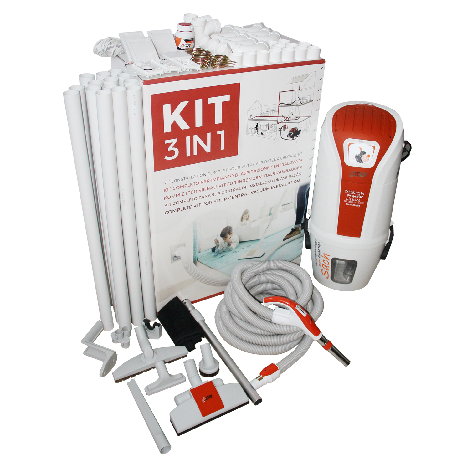 SACH VAC Dynamic 1.6 Zentralstaubsauger Set für Häuser bis 350m² mit Zentralstaubsauger, 3 Saugdosen und Schlauch-Set 10m inkl. Ein/Ausschalter und Zubehör